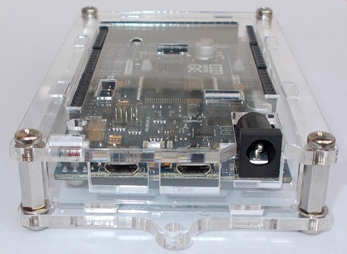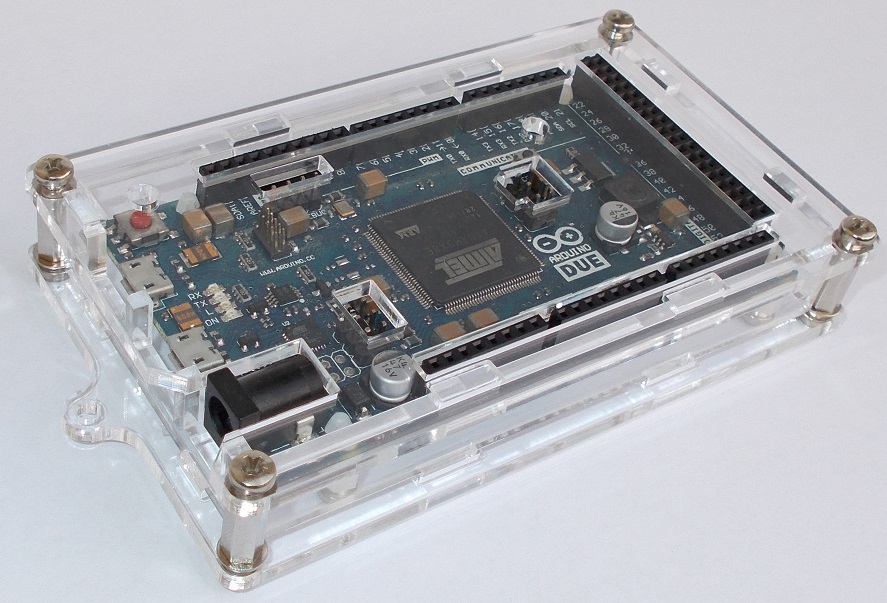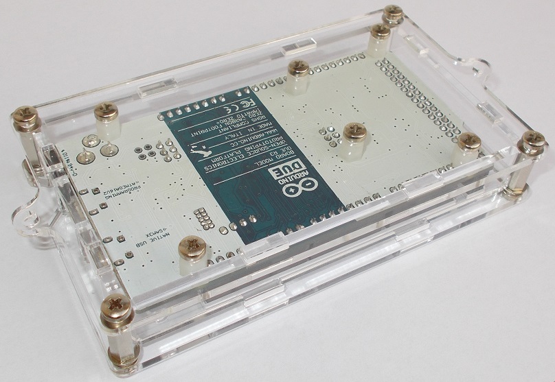 Please make sure your Arduino Due is built with 47uF/16V capacitor. If your Arduino Due clone is built with 100uF/25V capacitor the top cover will not fit!