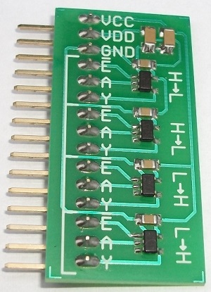 High to Low converters: (H->L on PCB silkscreen) can be used as 5V to VDD level conversion where VDD is 2 to 5 Volts. (most common 5V to 3.3V)