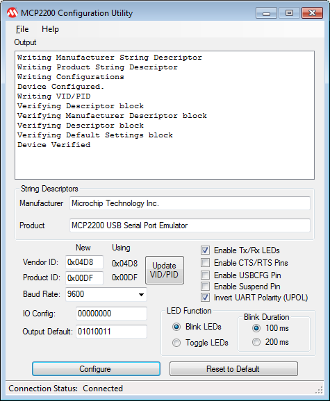 Will send the module configured. To configure the module yourself first download MCP2200 Configuration Utility here.